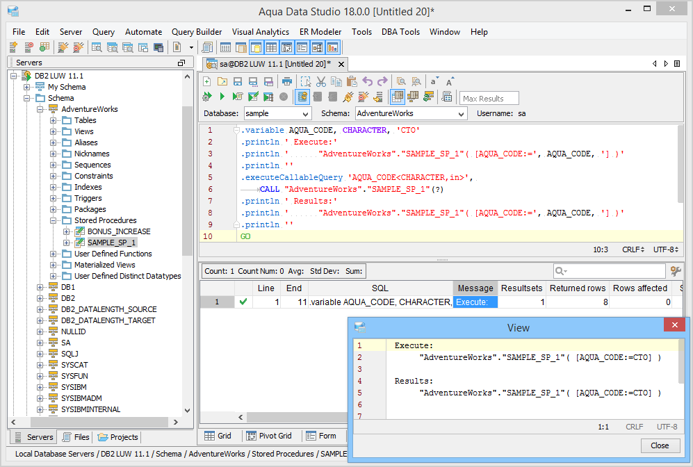 Creating and Executing a Sample Stored Procedure in Aqua Data Studio (DB2 UDB)