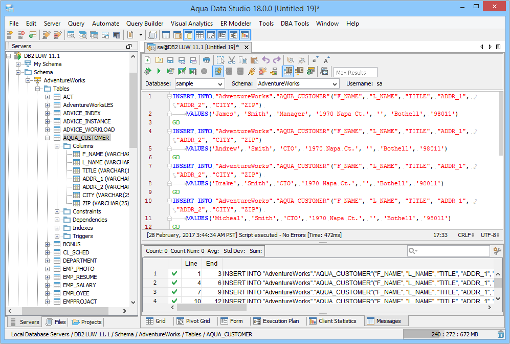 CREATE TABLE "DB2ADMIN"."AQUA_CUSTOMER" ( INSERT Statements