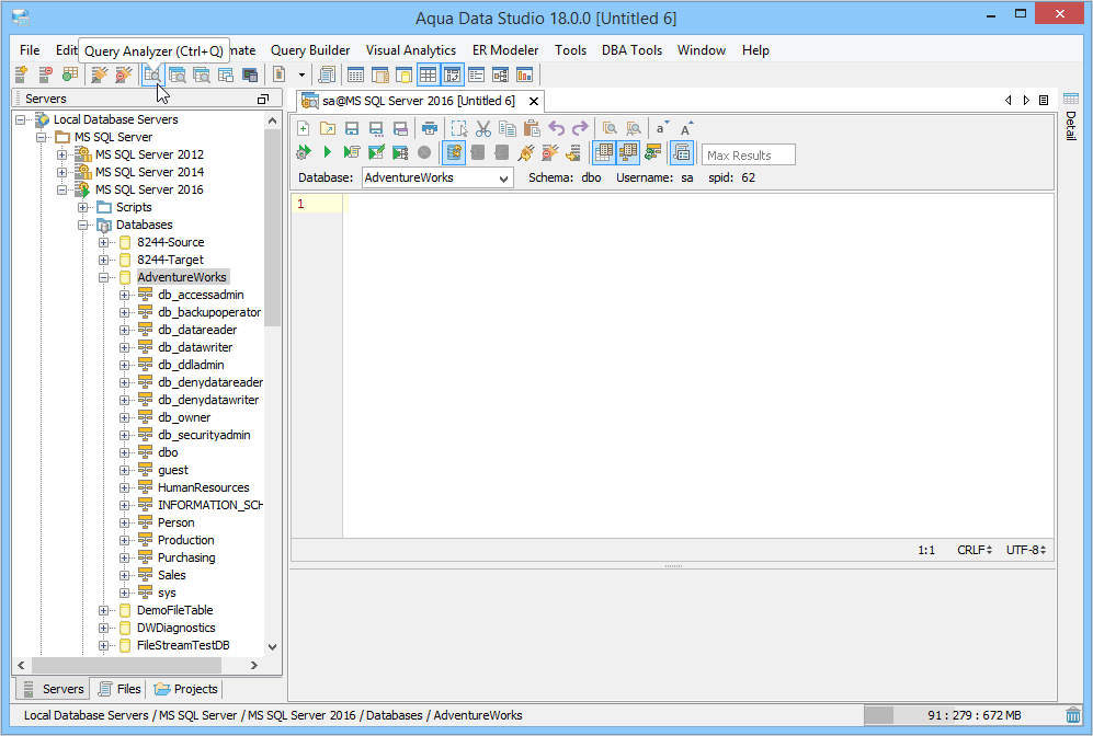 After generating a script, using "Save As" from within the query toolbar makes it possible to save the query and Aqua Commands together in a shared file or directory so that multiple users of Aqua Data Studio can access the layout and results.