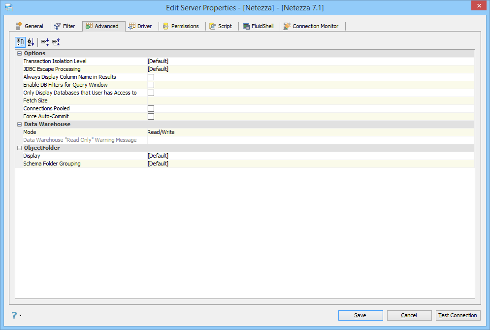 Edit the Server Properties to use Advanced Properties in Aqua Data Studio: