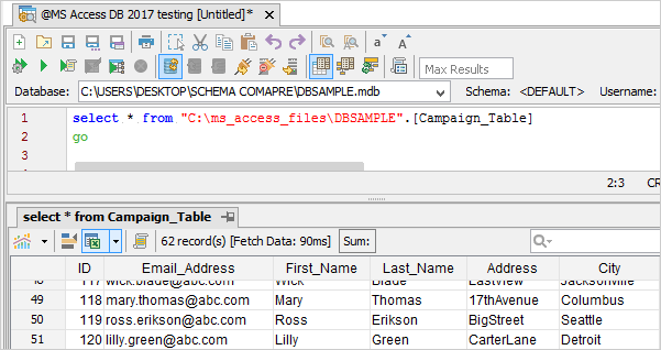The Microsoft Access Database server is registered successfully in Aqua Data Studio. You can now connect to the newly registered Server and perform Data Manipulations