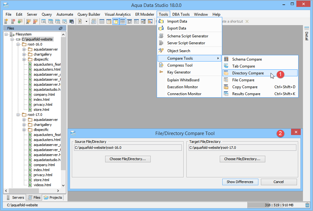 Directory Compare provides a method of identifying differences between contents of the directories and supports synchronizing selected or all differences of the selected files.