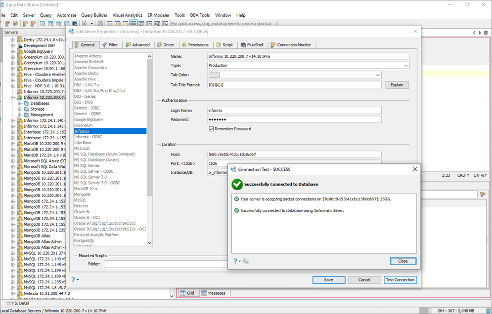 Aqua Data Studio supports IPv6 to have faster and more secure Database connections. The support for IPv6 includes dual-stack functionality and enhancements to Database and SSH Connections.