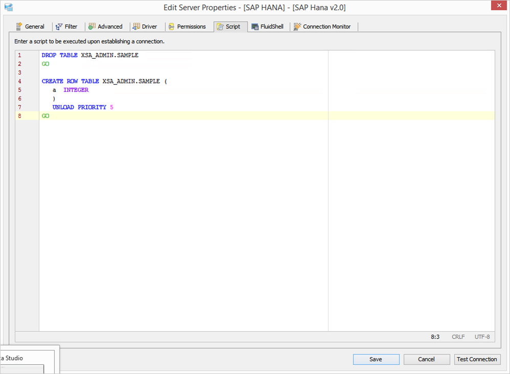 Edit Scripts in Server Properties in Aqua Data Studio: