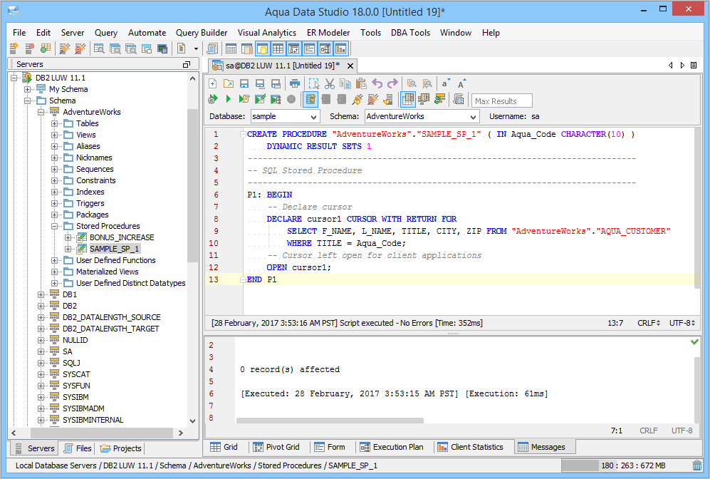 Creating and Executing a Sample Stored Procedure in Aqua Data Studio (DB2 UDB)