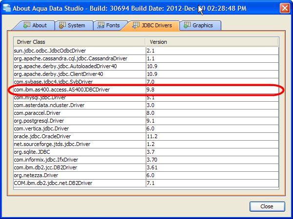 To update the Aqua Data Studio JDBC drivers for DB2 iSeries you need to overwrite the Aqua Data Studio db2java.jar, db2jcc.jar and db2jcc_license_cu.jar files. Below is a listing of the Aqua Data Studio library directory [ADS_INSTALL]\lib\drivers\ ...