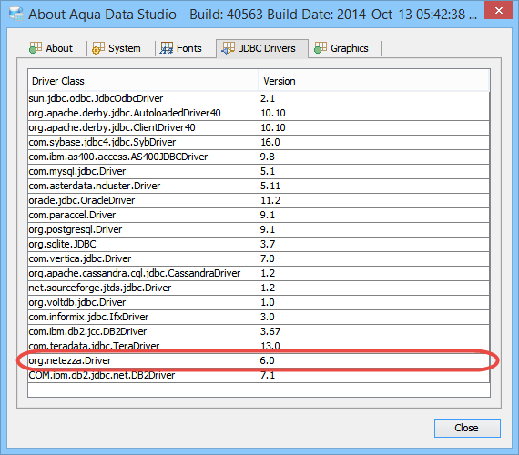To update the Aqua Data Studio JDBC drivers for Netezza you need to overwrite the Aqua Data Studio nzjdbc.jar file. Below is a listing of the Aqua Data Studio library directory [ADS_INSTALL]\lib\drivers\ ...