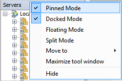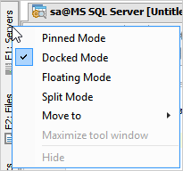 In floating mode, panels are detached from Aqua Data Studio’s main window and displayed as a separate, free-floating window. A floating panel can be moved around anywhere on the screen and is always on top of the editor area. Initially, all panels are in the fixed mode which means they are part of the main Aqua Data Studio window. To switch between the floating and fixed mode, turn the Floating Mode on and off.