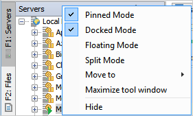 Split Mode is turned ON for Servers panel, turned OFF for Projects panel. |