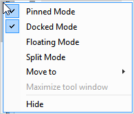 Pinned Mode is not available when panels are undocked or in the floating modes.