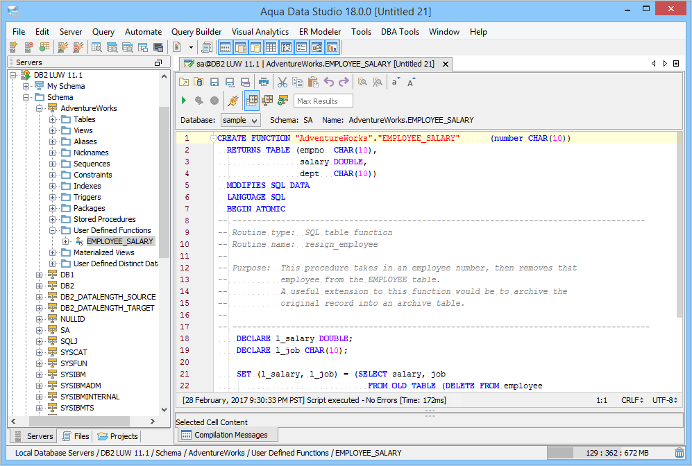Creating and Executing a Sample Stored Procedure in Aqua Data Studio (DB2 UDB)