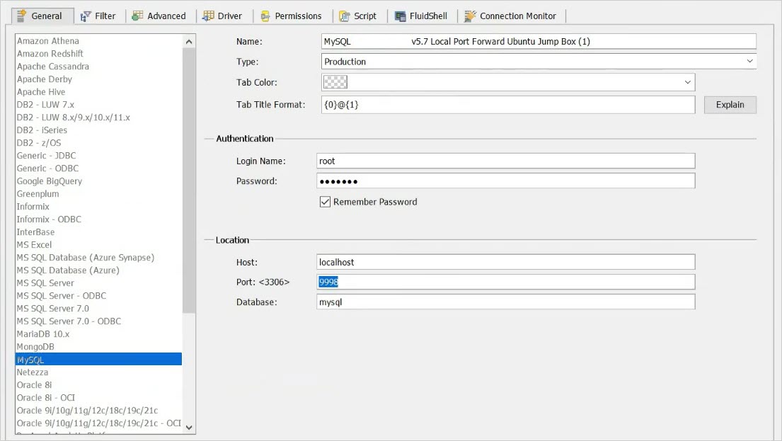 Using Aqua Data Studio to open a SSH Server