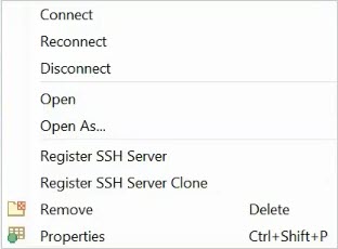 To share or copy registered server connections for use on another computer, see Configuration & Connection Files Using Advanced Properties (Advanced Tab) Edit the SSH Server Properties to use Advanced Properties: