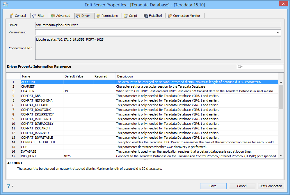 Edit the Drivers Properties to use Driver Parameters in Aqua Data Studio: