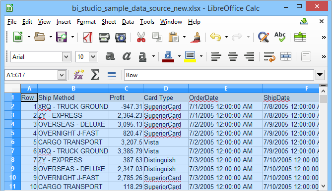 It is also possible to copy spreadsheet content from CSV files or applications like Excel, OpenOffice or Libre Office to paste this content into a Visual Analytics Workbook as a Data Source.
