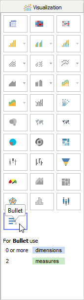 Bullet chart is a powerful way of comparing the actual value with a target value and provides a richer data display using much less space compared to dashboard gauges and meters.