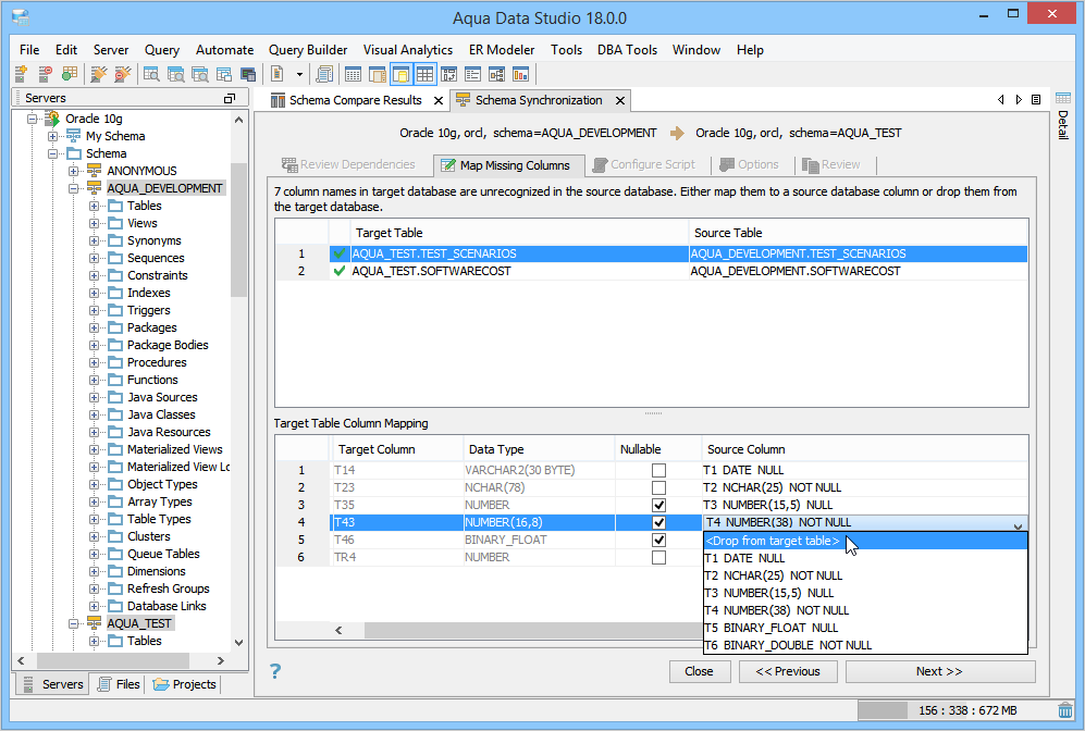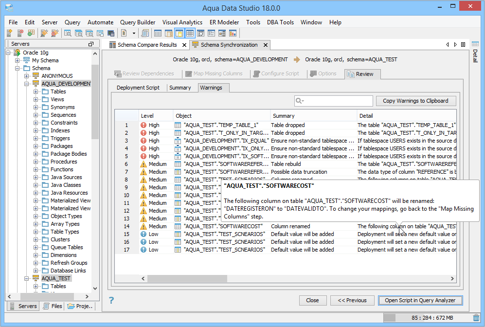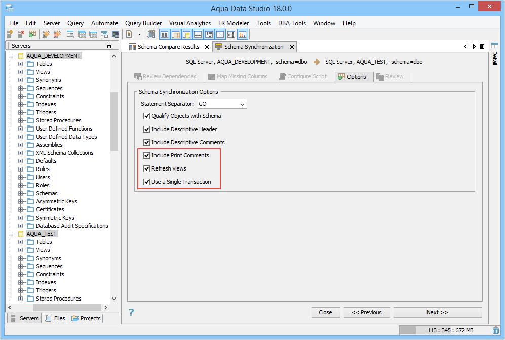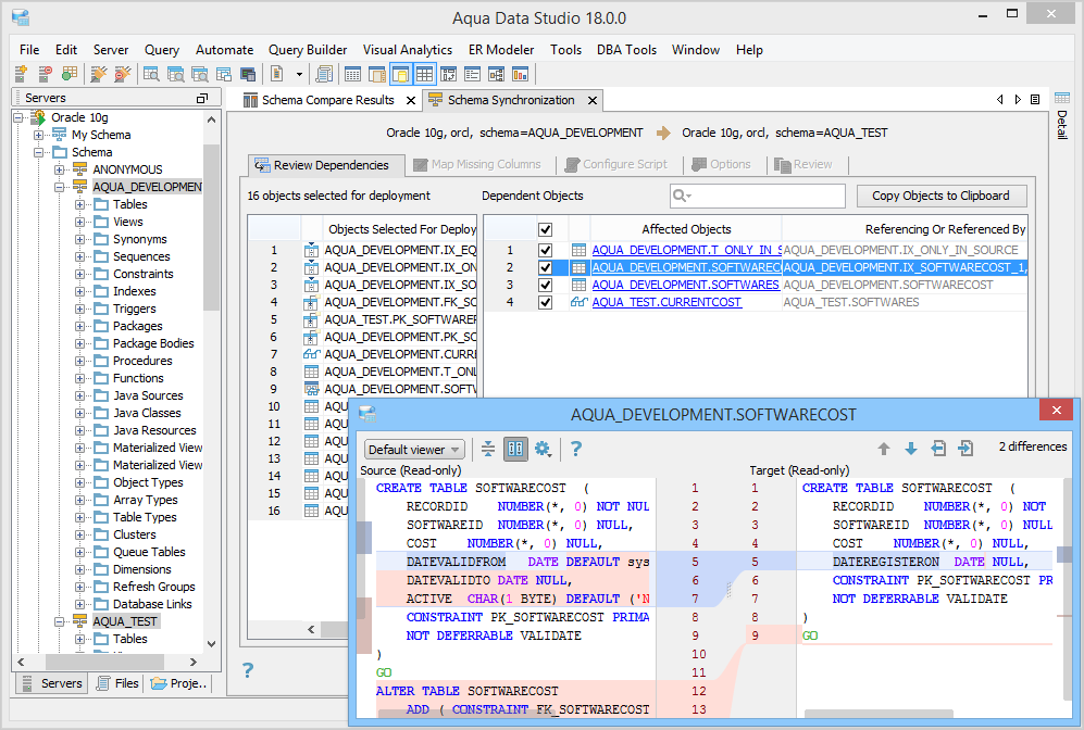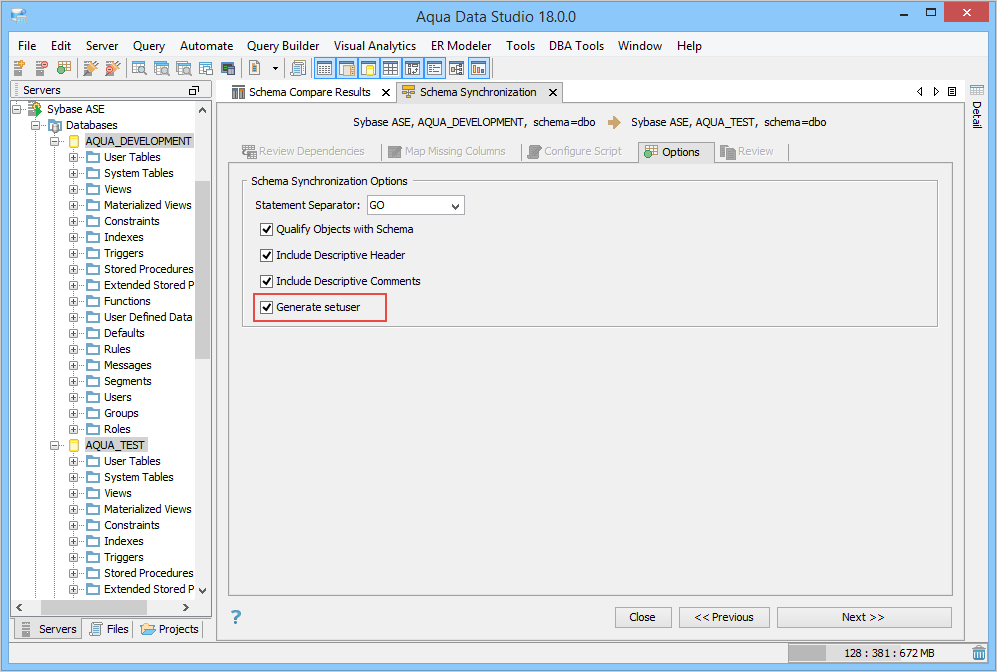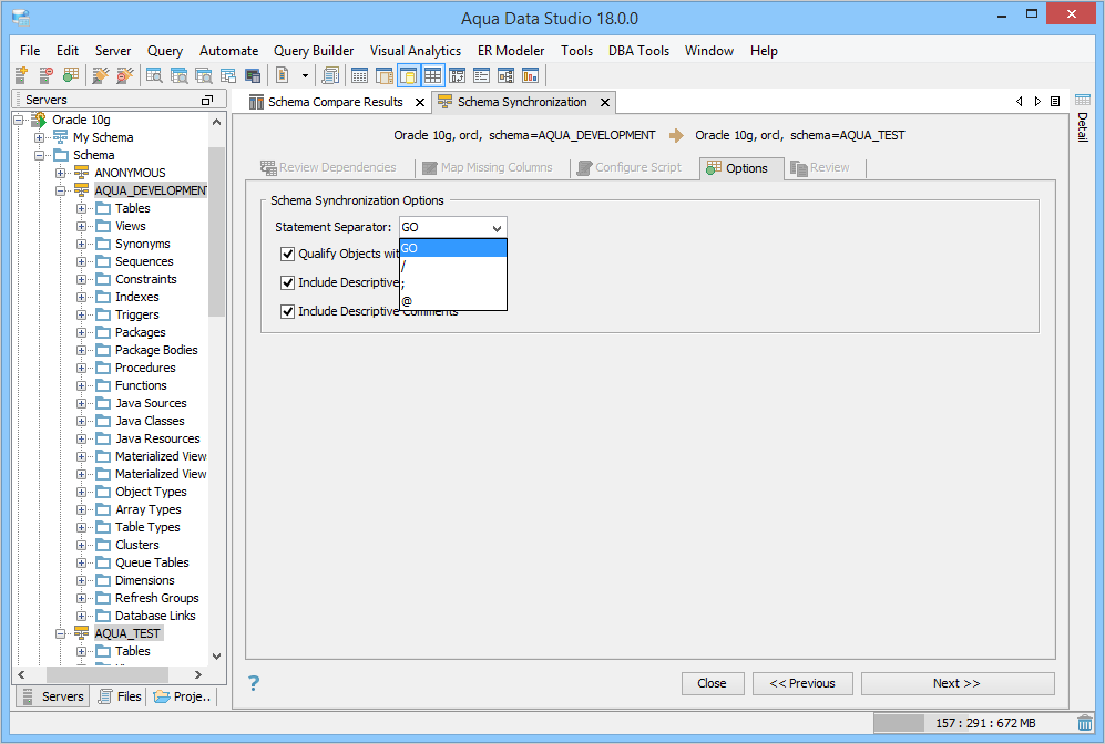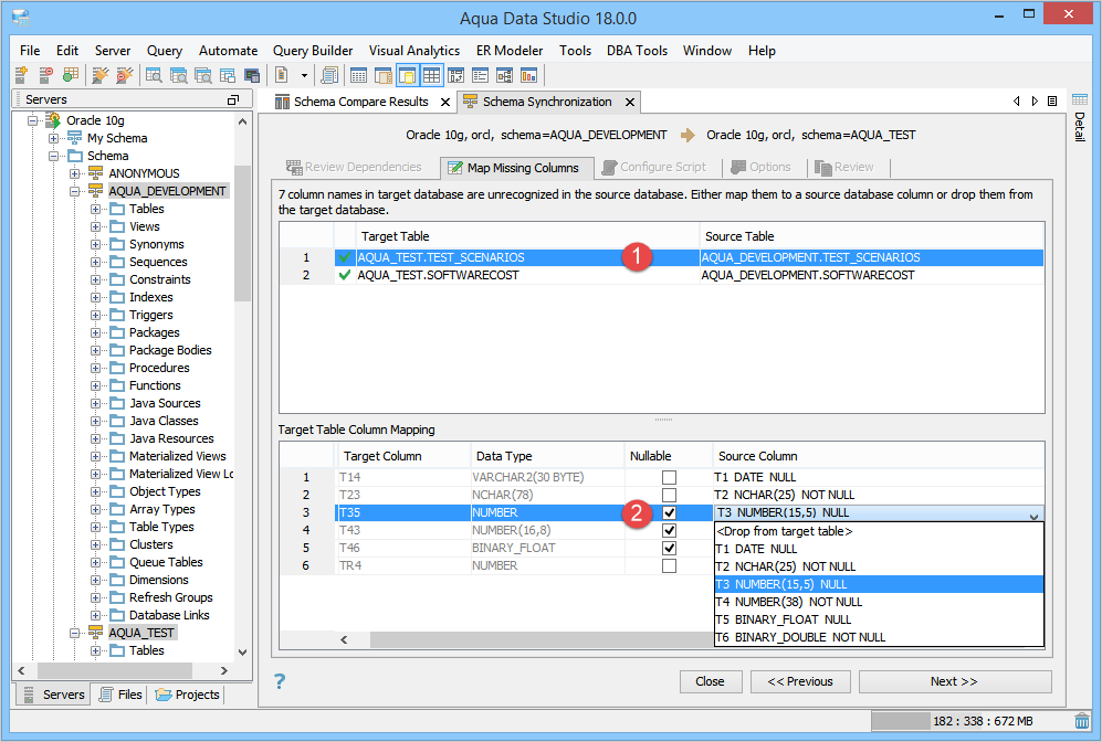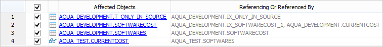 After reviewing the schema compare results, select objects for synchronization, then click , and complete the synchronization process in the following order.