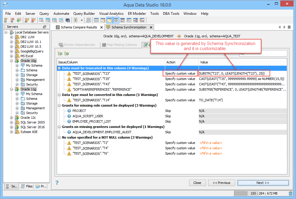 Before synchronizing the source and target schemas, we strongly recommend backing up data of the target schema.