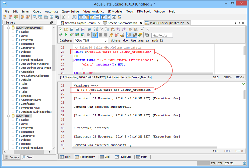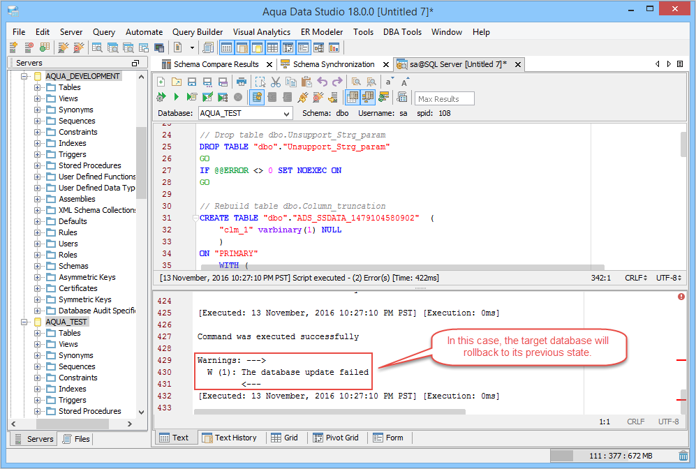 We recommend backing up the target database and executing the script in the test environment before executing it in the production environment.