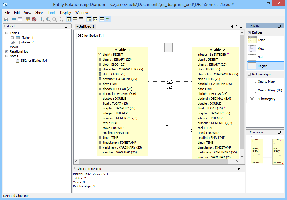 Notes and Regions are only for use in labeling and organizing entities in ER Models and are NOT included in the generated SQL when ER Models are scripted to DDL.