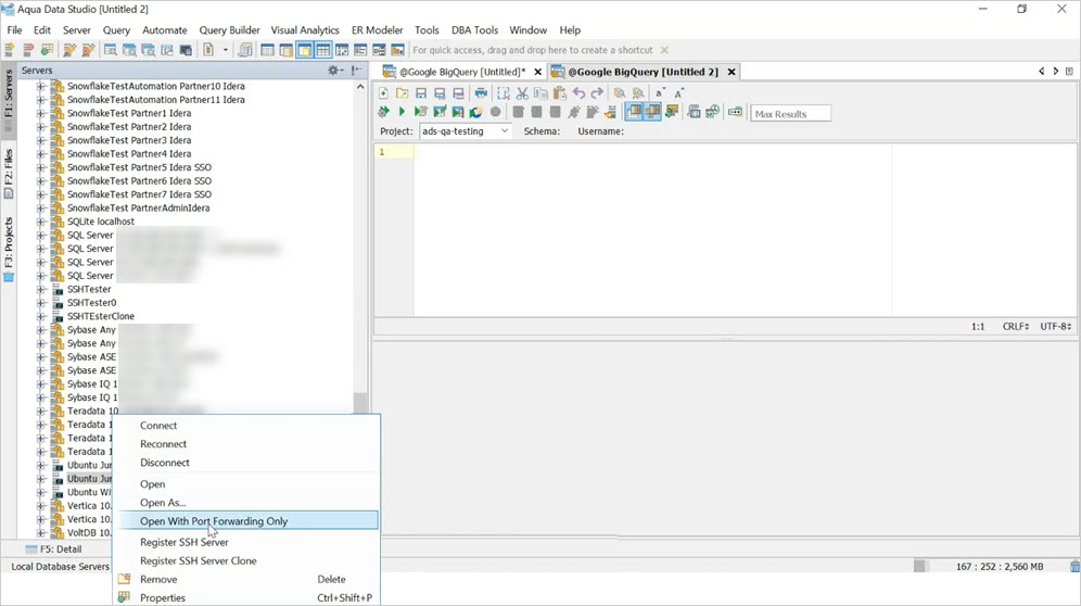 Using Aqua Data Studio to open a SSH Server