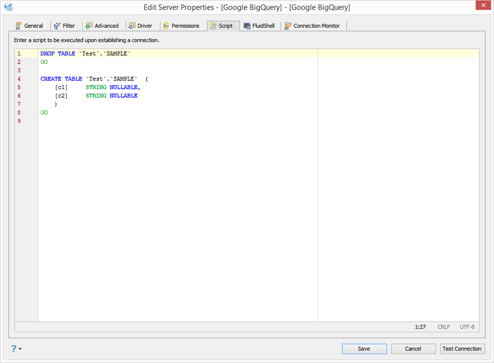 Edit Scripts in Server Properties in Aqua Data Studio: