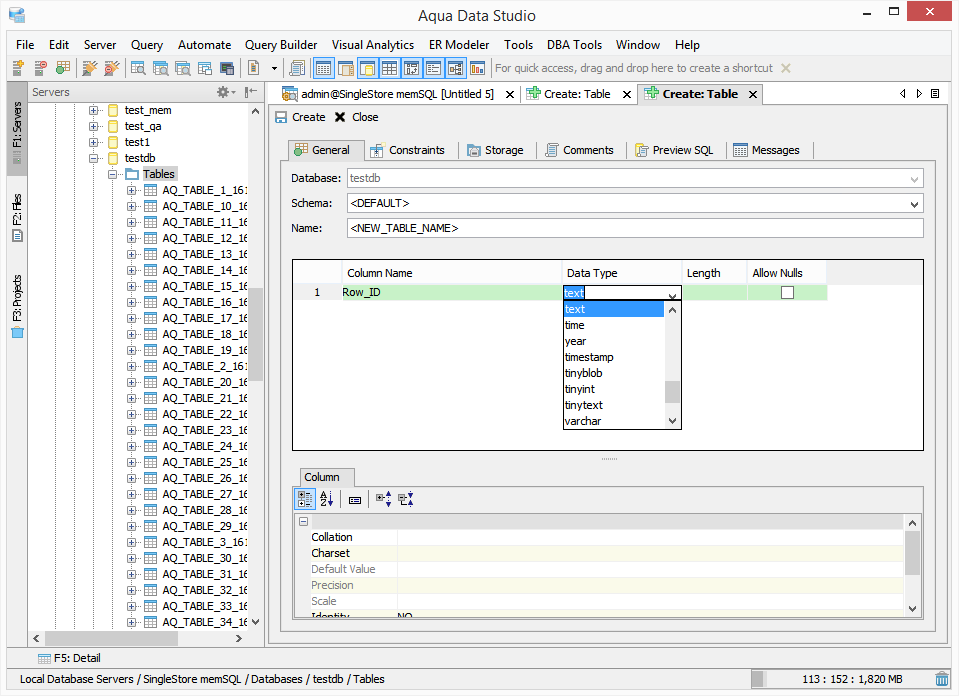 In Aqua Data Studio Version 22.0 release, we now support SingleStore (MemSQL). Aqua Data Studio now gives you access to a SingleStore database, previously known as MemSQL, through our MariaDB connection.