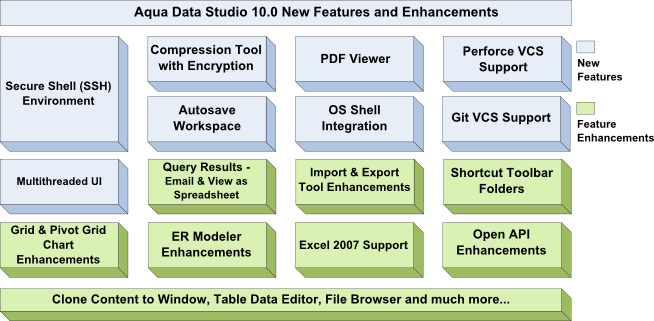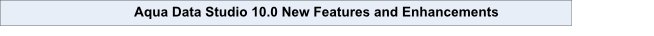 In Aqua Data Studio v10.0 the GUI has been redesigned to implement a multithreaded architecture. This enhancement significantly improves overall GUI responsiveness and prevents application "freezing" on long or slow database transactions and operations.