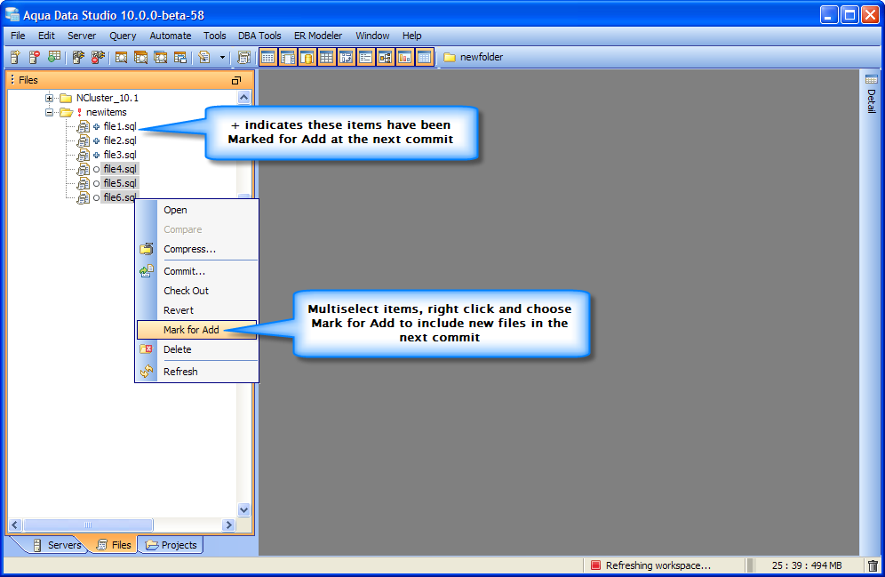 Mark for Add, Submit, Checkout, Delete from Workspace, Rename