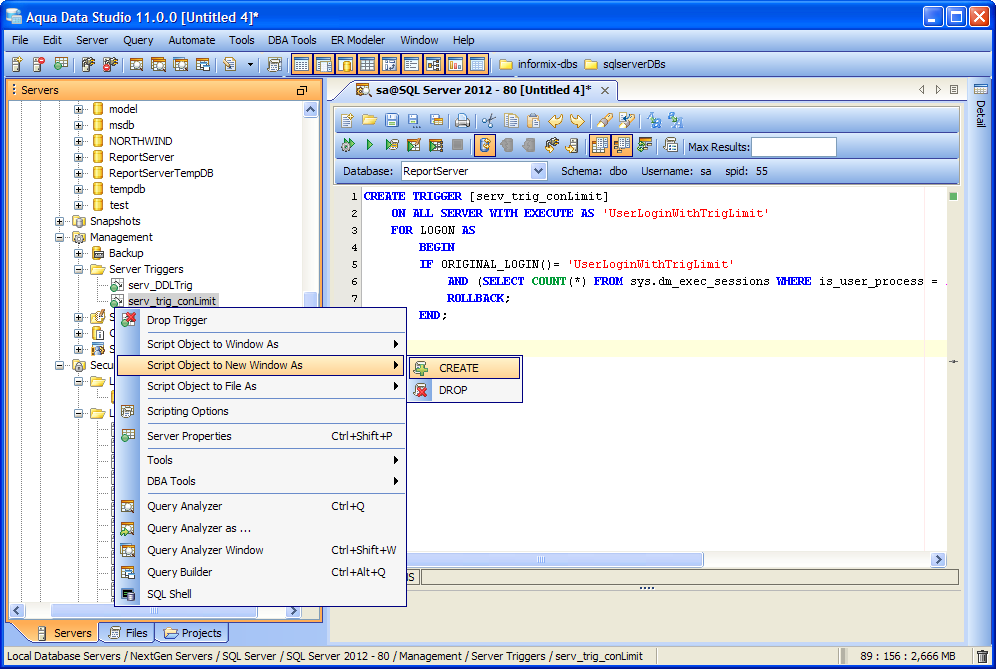 The latest version of Aqua Data Server now supports displaying and scripting of Server Triggers.