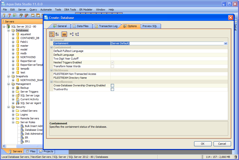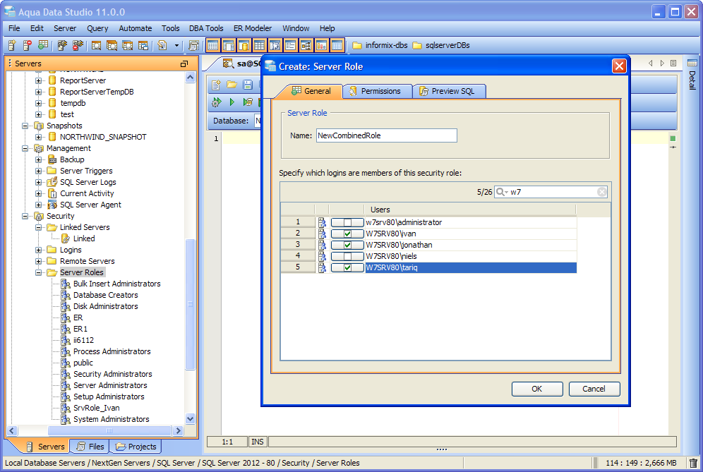 Create Server Role GUI is now supported in Aqua Data Studio 11.0 for SQL Server 2012.