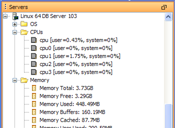 Each processor core within a system is displayed under CPUs as a tree node. The first node in the list ("cpu" without a number next to it) displays aggregate statistics of all numbered CPU nodes (cpu0, cpu1, cpu2, etc.). A dual-core processor will have two numbered CPU nodes, a quad-core processor contains four, a hexa-core processor contains six. The screenshot above is a dual quad-core system with a total of 8 cores.