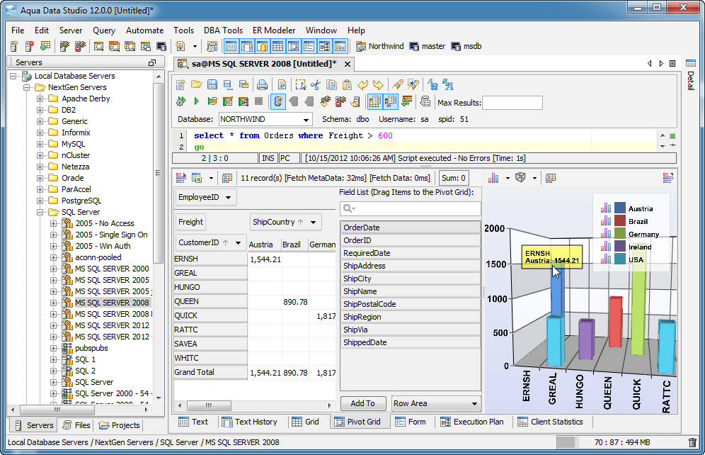 When exporting to Excel, pivot grids are no longer limited to 65,000 rows. Plus, your customized chart color properties in Aqua Data Studio are now preserved in Excel. Learn more