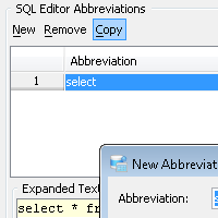 To quickly reuse and alter existing Editor Abbreviations, it is now possible to select one and click the newly added Copy button to use its contents with a new Abbreviation.