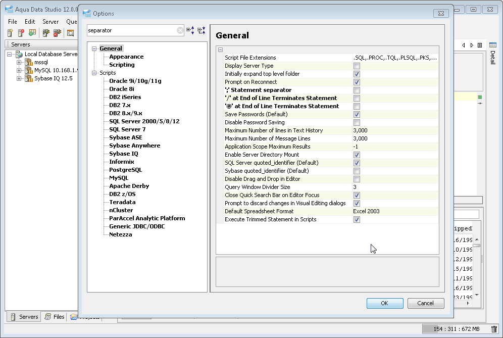 Aqua Data Studio includes an extensive list of options to allow users to customize its behavior. Locating specific options can sometimes be a challenge. The options dialog now includes an enhanced filtering feature that allows you to quickly locate any or all features you are looking for by quickly typing a phrase to match with names and descriptions of the options. As you type your term, matches in values, sections, name/value pairs and descriptions are discovered and bolded so you can see them instantly.