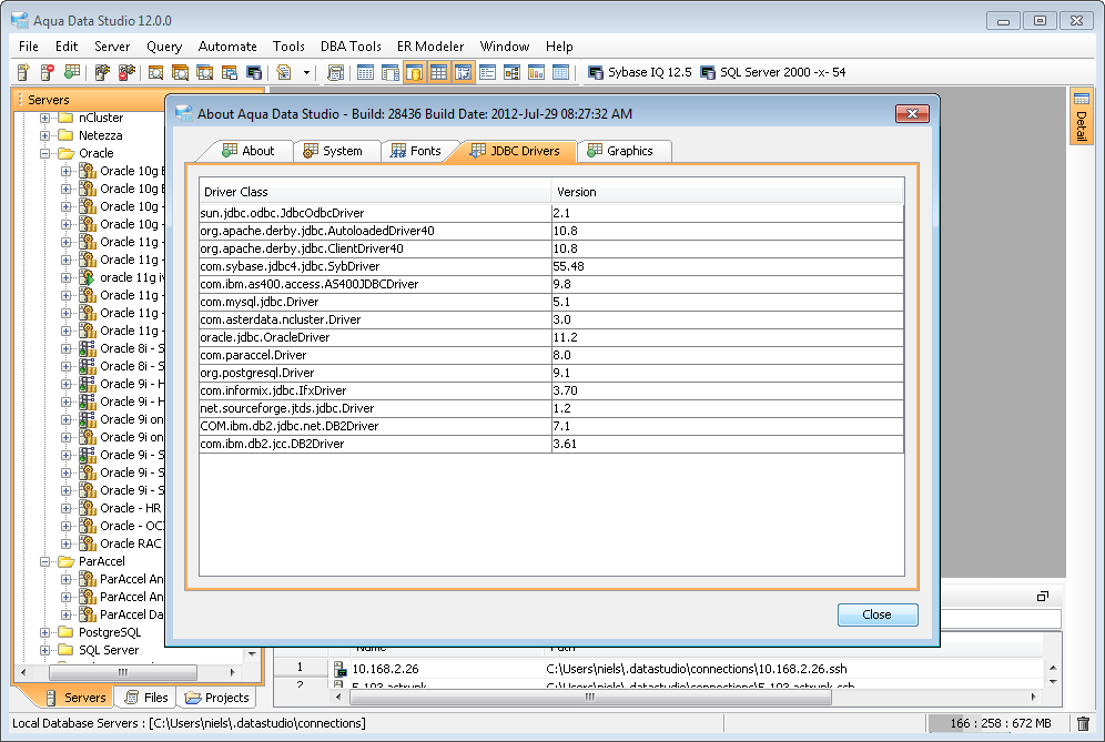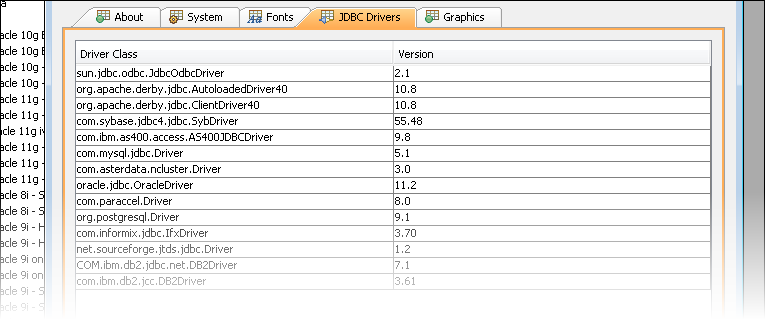 Aqua Data Studio is bundled with JDBC drivers for all major database vendors. Version 12.0 now includes updated driver versions to continue to provide the latest enhancements and optimizations from the database vendors. Our list of updated drivers include :