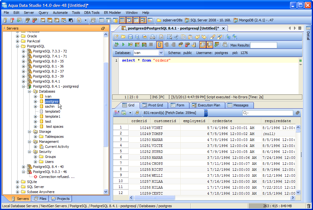With Connection Clustering, if you expand a PostgreSQL server connection you can see all of its databases and expand them all. No more need to have one connection per database to explore the contents of your whole server.