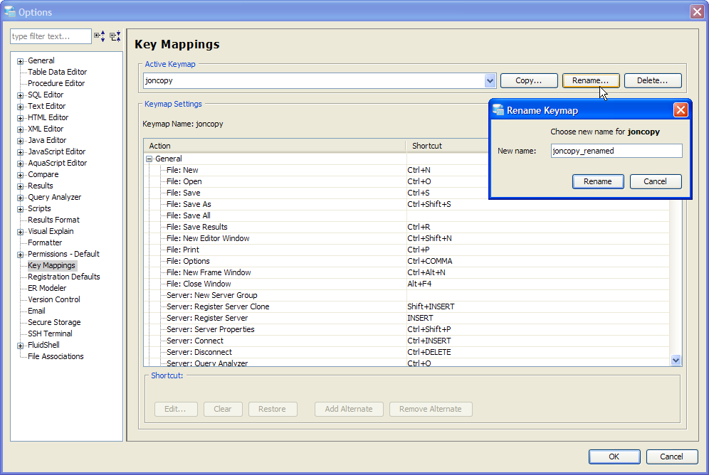 If you have an existing Keymapping you can now rename it by selecting it in the Keymaps list then clicking the the Rename button to the right.