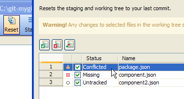 We've made it much easier to perform a Git Reset to undo changes. With our improved Reset UI, you can discard Conflicted and Untracked files.