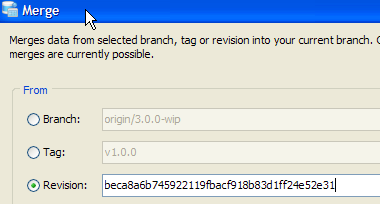 Simply click Merge to merge another branch or tag or revision into your current branch. With our new Commit Graph, you'll be able to visually pinpoint when the merged occurred.