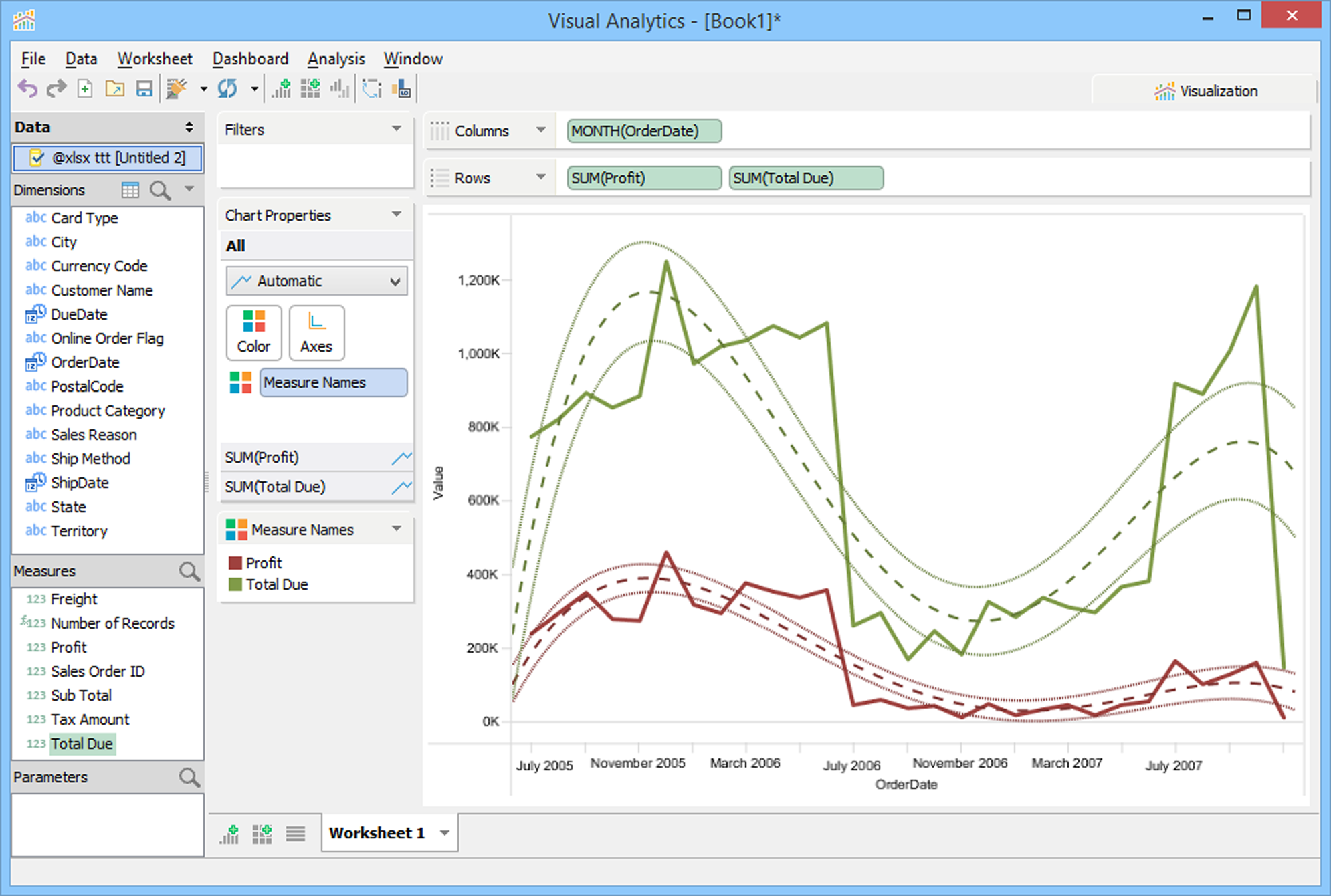 Choose from several Trend Line types like Linear, Logarithmic, Exponential and Polynomial. You can now display Confidence Bands and see more information on how lines are calculated to get full line details.