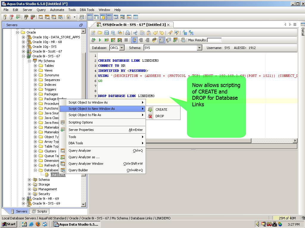 For Oracle added support to script CREATE & DROP for Database Links |