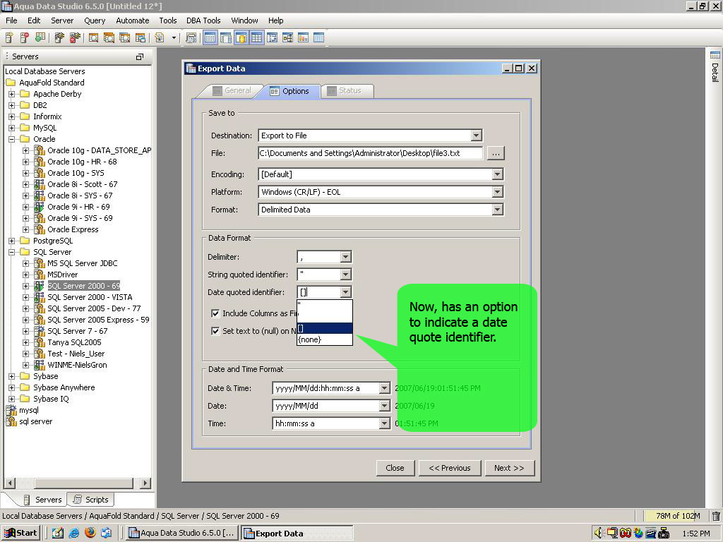 The Export Tool now has an option to indicate the Date quote identifier for the output results. |