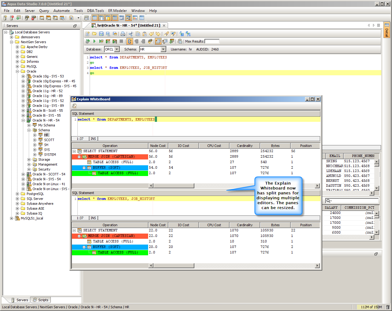 The Explain Whiteboard will help you fine tune SQL statement performance. It’s ideal for comparing multiple explain plans as well as their execution costs.