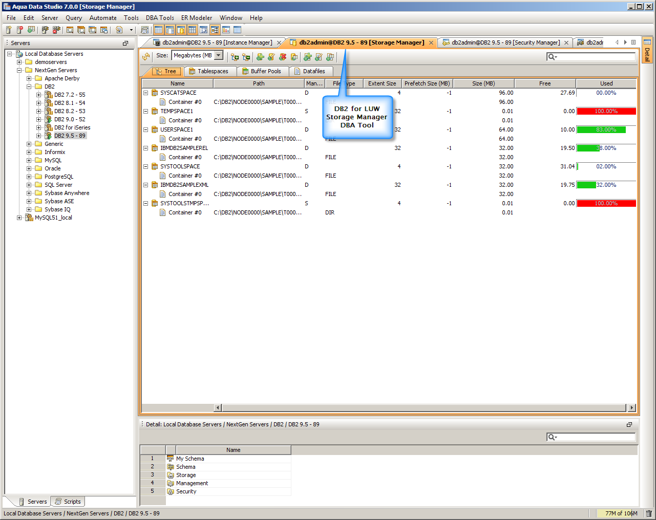 The purpose of the Storage Manager is to help you visualize and maintain storage parameters for DB2 for LUW databases.