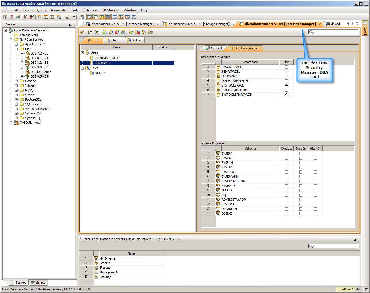 The Security Manager is a new feature for DB2 UDB, and provides a simple view of Users and Roles. Specifically, this is designed to help you: