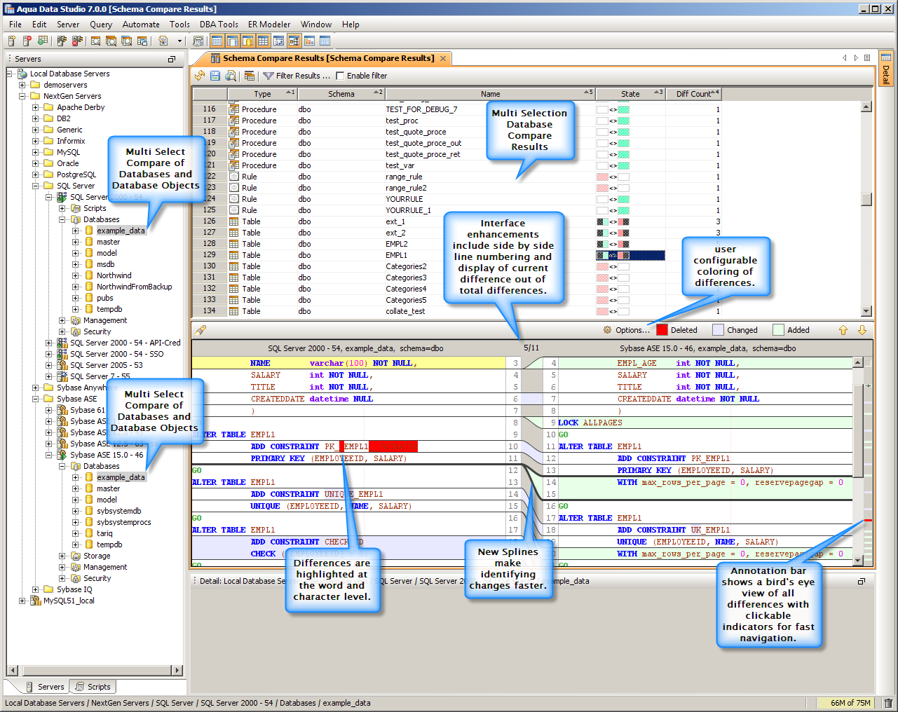 One of the most useful enhancements in Aqua Data Studio 7 is the ability to select multiple schema objects and quickly generate DDL CREATE and DROP statements to a query window. This feature even extends to multi-object DROPs. You can also preview multi-selected objects and sort or quick filter through the list before executing the operation.