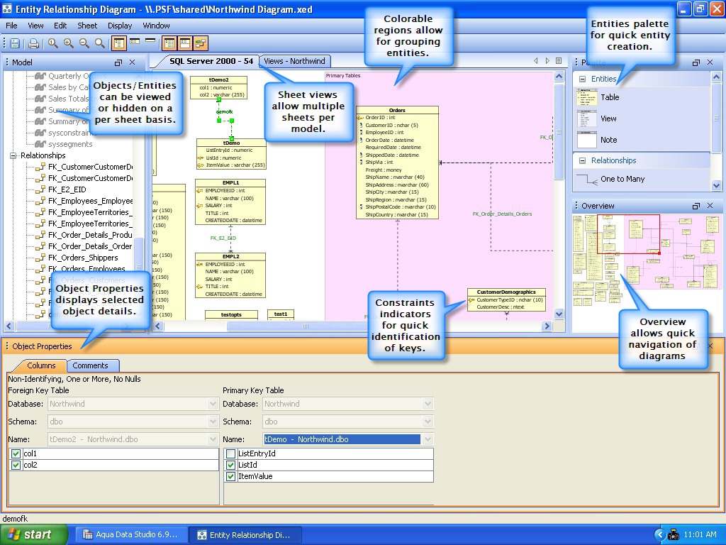 The ER Modeler vastly reduces development time and increases understanding of database schemas and relationships. You can create, explore, detail, and modify database schemas to create fully editable and scriptable diagrams of database relationships and objects. The ER Modeler works with every database you already access in Aqua Data Studio, regardless of vendor or version. Learn more »
