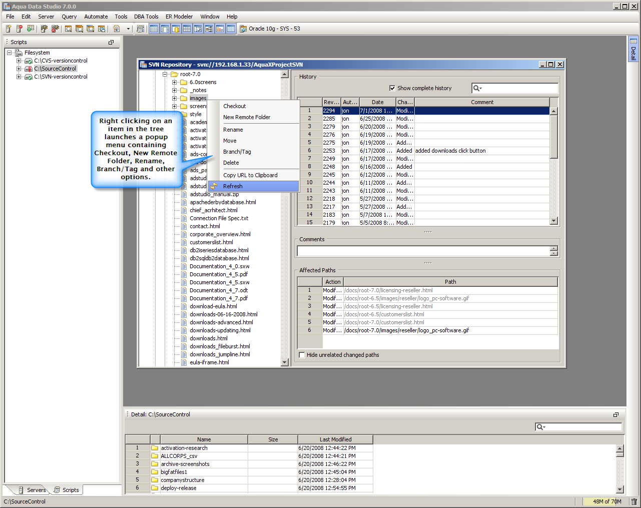 Introducing the Repository Browser. It’s now even easier to browse the entire contents and history of a repository—even without having a full local copy on your computer. Works with both Subversion and CVS. Learn more »