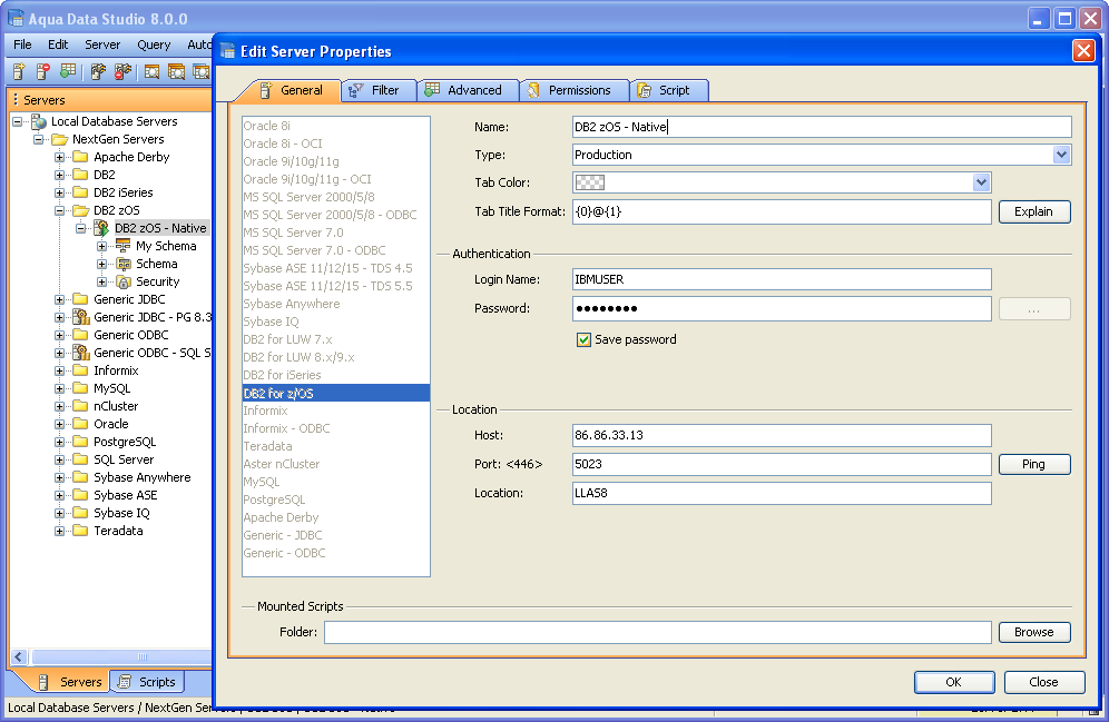 Note: JDBC Driver db2jcc_license_cisuz.jar (provided with DB2 Connect and DB2 Enterprise Server Edition) must be downloaded from vendor and is not bundled within ADS. Copy the driver into the Aqua Data Studio/lib/drivers folder.
